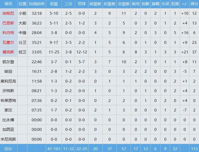 馬刺數(shù)據(jù)如下: