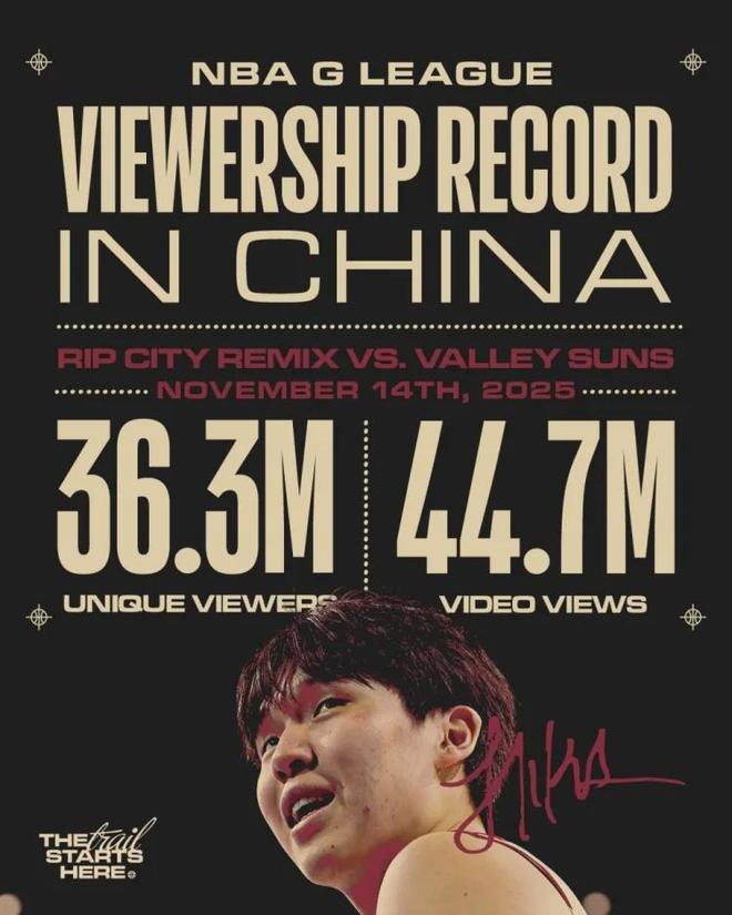 過(guò)去兩場(chǎng)G聯(lián)賽,楊瀚森場(chǎng)均有著14.5分11板3.5助1斷2帽全面數(shù)據(jù)進(jìn)賬。據(jù)統(tǒng)計(jì),北京時(shí)間11月15日楊瀚森G聯(lián)賽首秀,即撕裂之城混音107-104山谷太陽(yáng)比賽,創(chuàng)下G聯(lián)賽在中國(guó)地區(qū)的收視紀(jì)錄,總共吸引3630萬(wàn)獨(dú)立觀眾(指去重后的觀看人數(shù)),比賽視頻總觀看次數(shù)更是達(dá)到4470萬(wàn)。