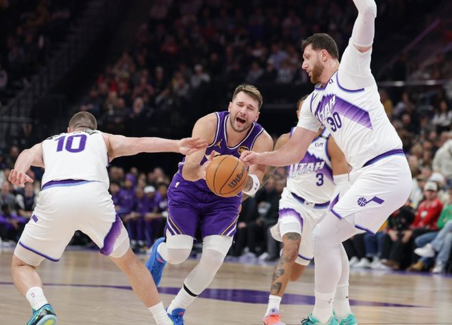 從一組數據說起,本賽季詹姆斯+東契奇+里夫斯三巨頭同時在場時,湖人百回合要輸對手3.6分,但如果拆開讓東契奇或者老詹分別帶替補,都能贏分。以最近一場爆冷輸給快船的比賽為例,里夫斯+艾頓+八村塁都受傷,東契奇打了非常糟糕的半場后也傷退,就剩下馬上41歲的詹姆斯,全場出戰38分鐘,28中15,空砍36分4籃板3助攻。誠然,湖人傷兵滿營,但有三個疑問,第一,東契奇怎么了?從斯洛文尼亞陪妻子生完孩子后,明顯胖了一圈,脾氣卻越來越大;第二,雷迪克本賽季扶著東契奇上位,詹姆斯逐漸淪為局外人角色。
